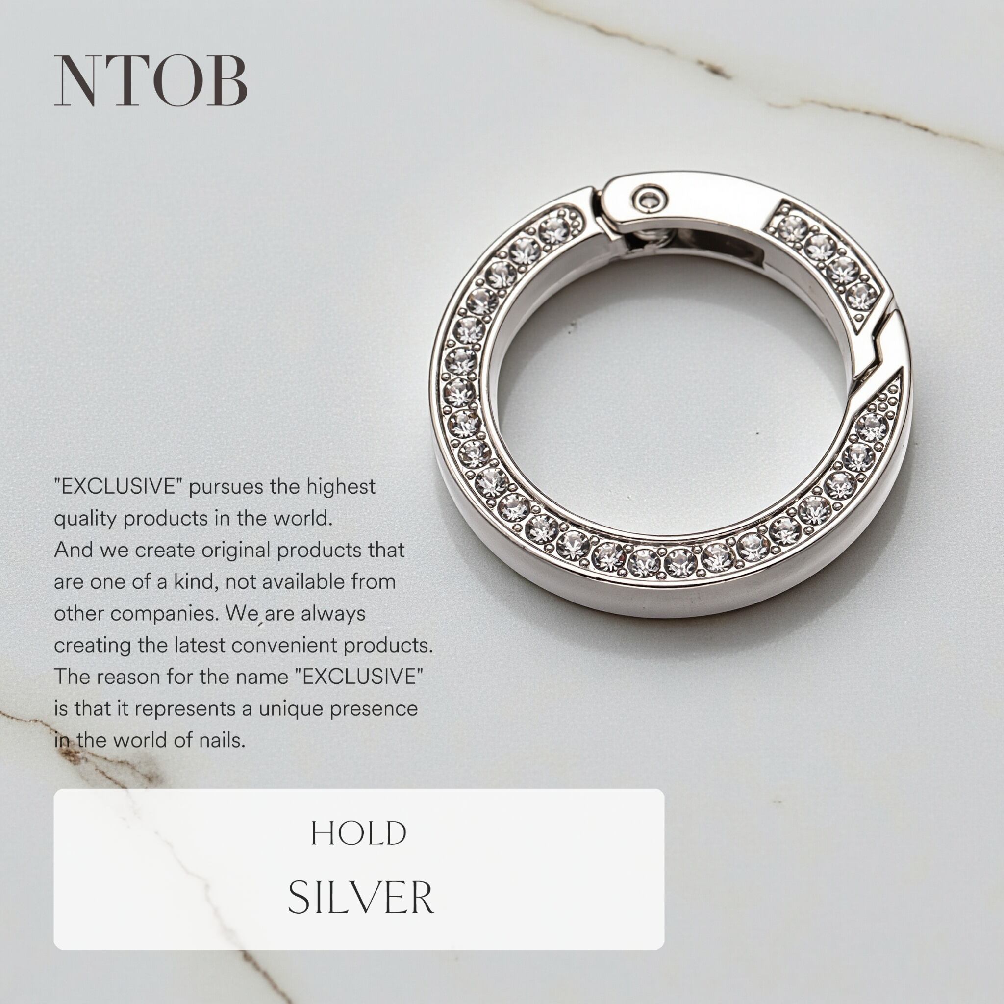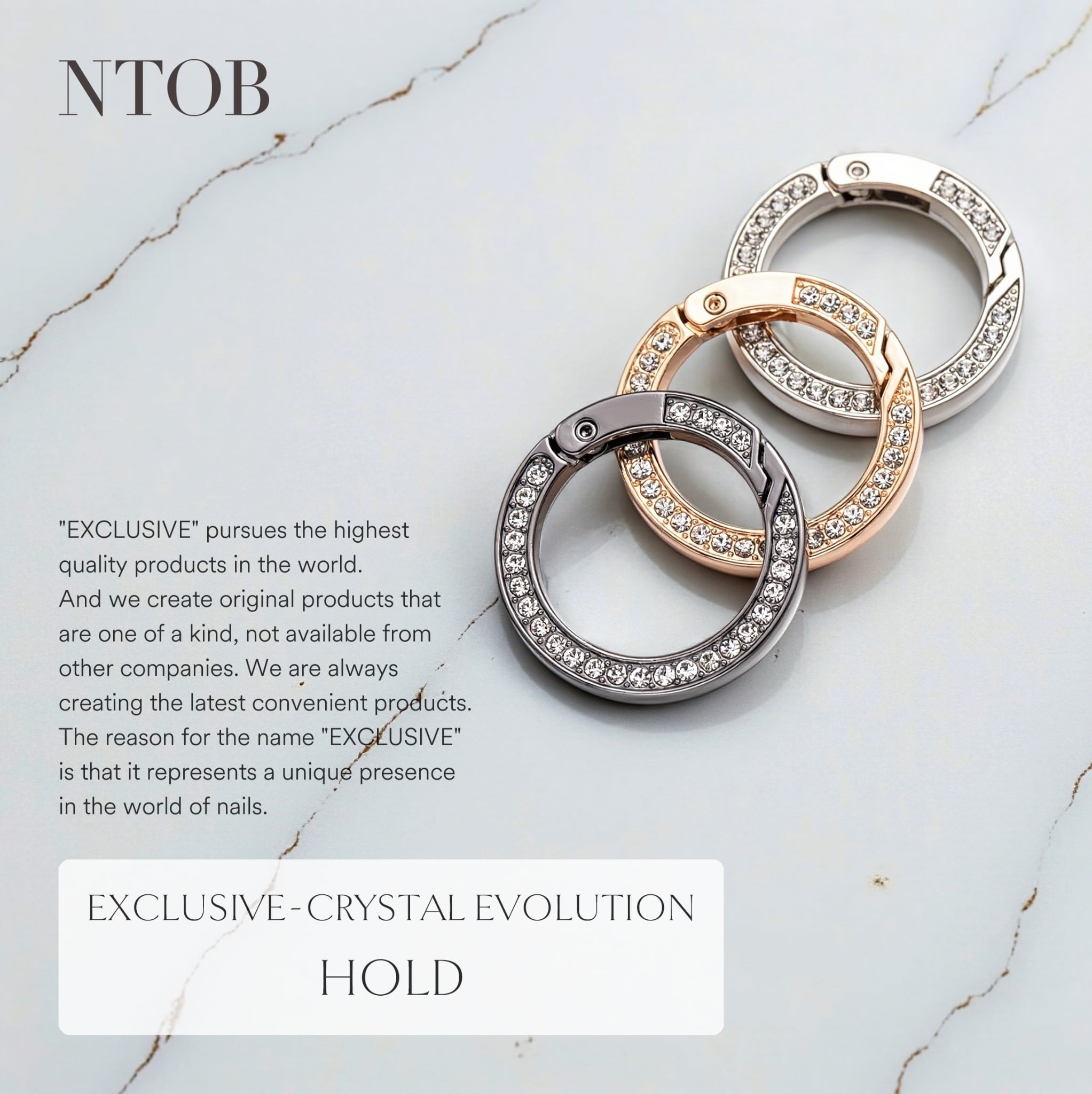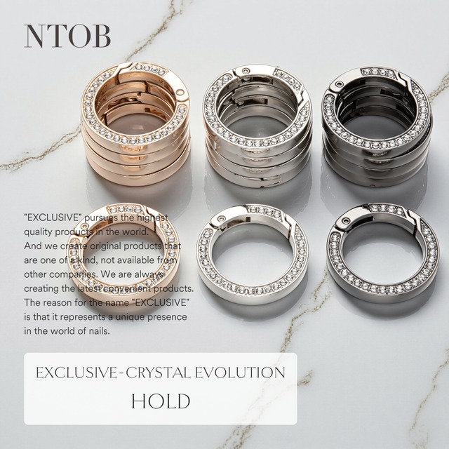 クリスタルガラスを両面にセットしたキーリングになります。 ループやツイストのヘッド交換としても、お愉しみいただけます。 【シリーズ】クリスタル・エボリューション 【品名】ホールド 【カラー】3色 【サイズ】外径34mm/内径25mm/幅4mm 【素材】クリスタルガラス、合金 【付属品】タグ・袋