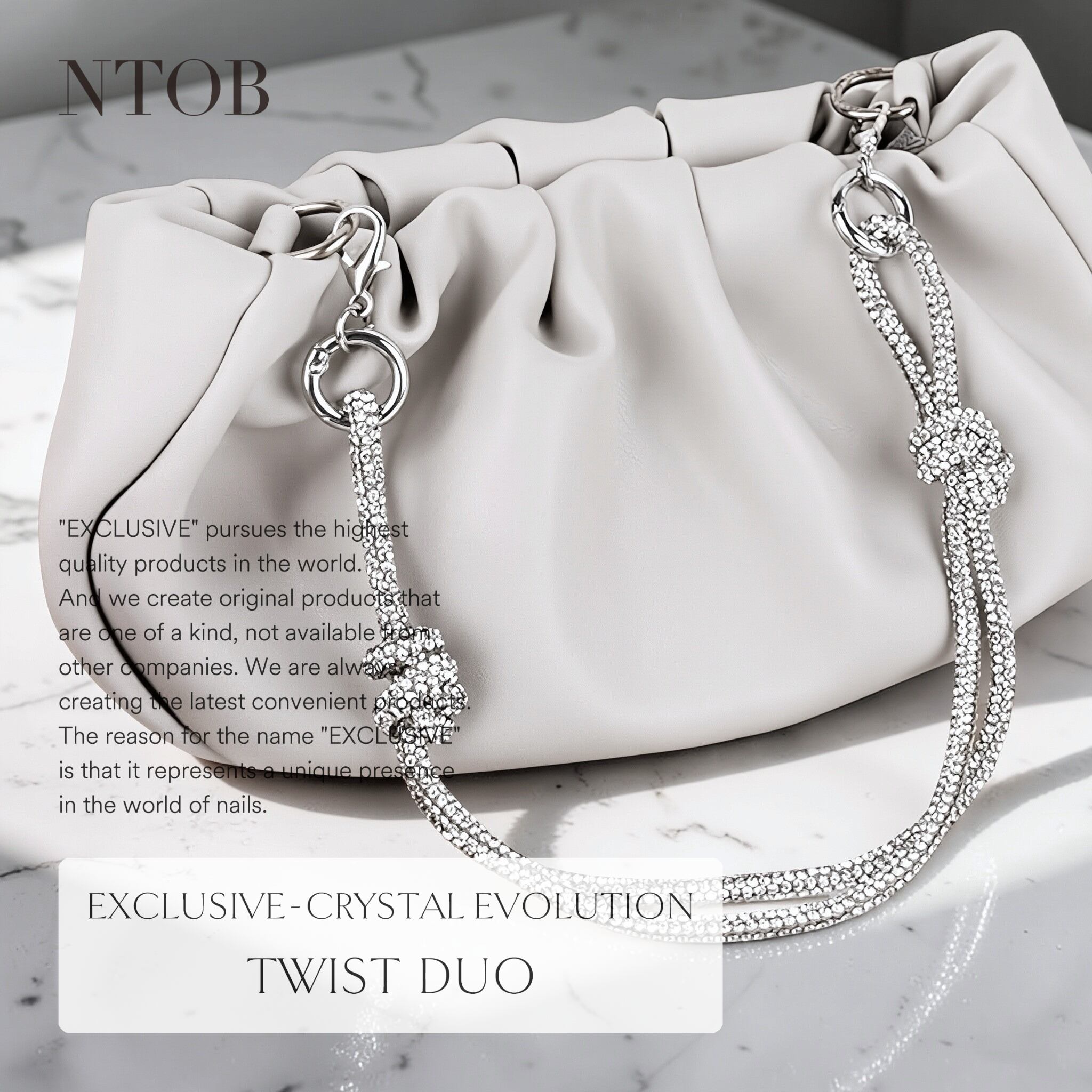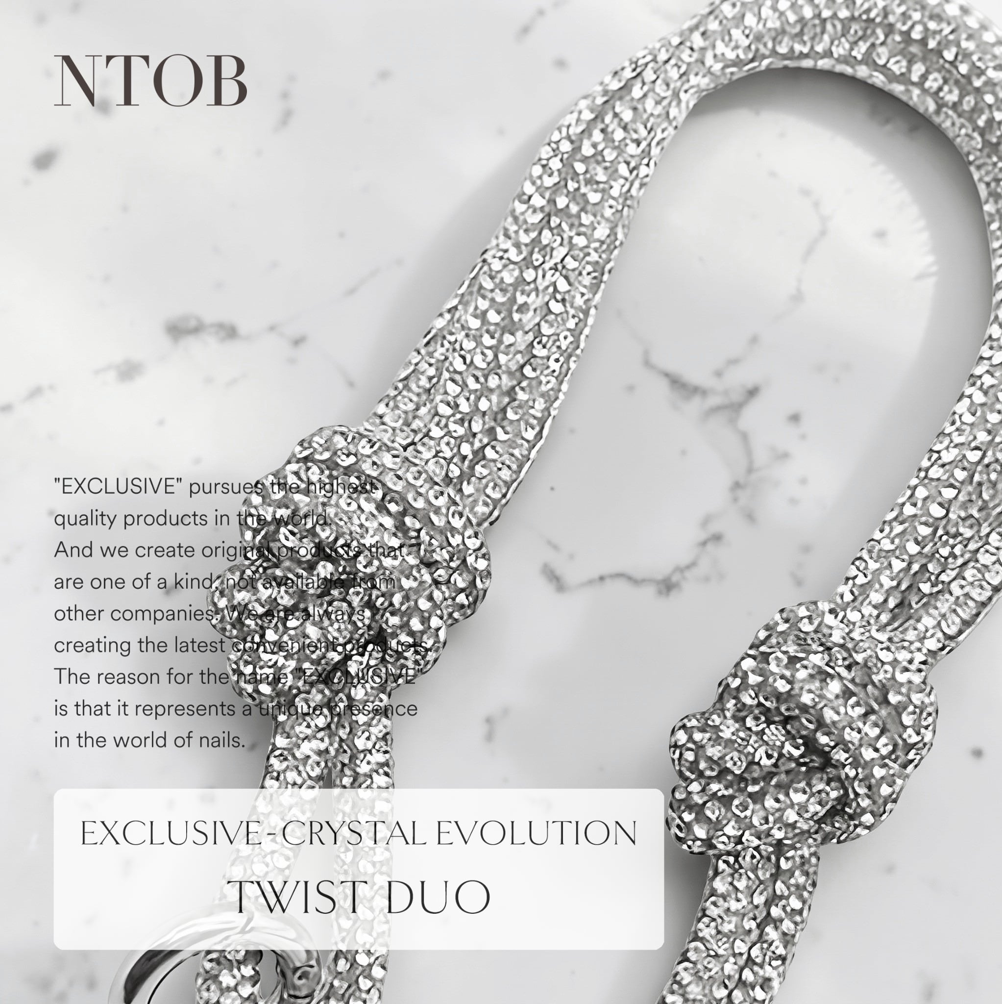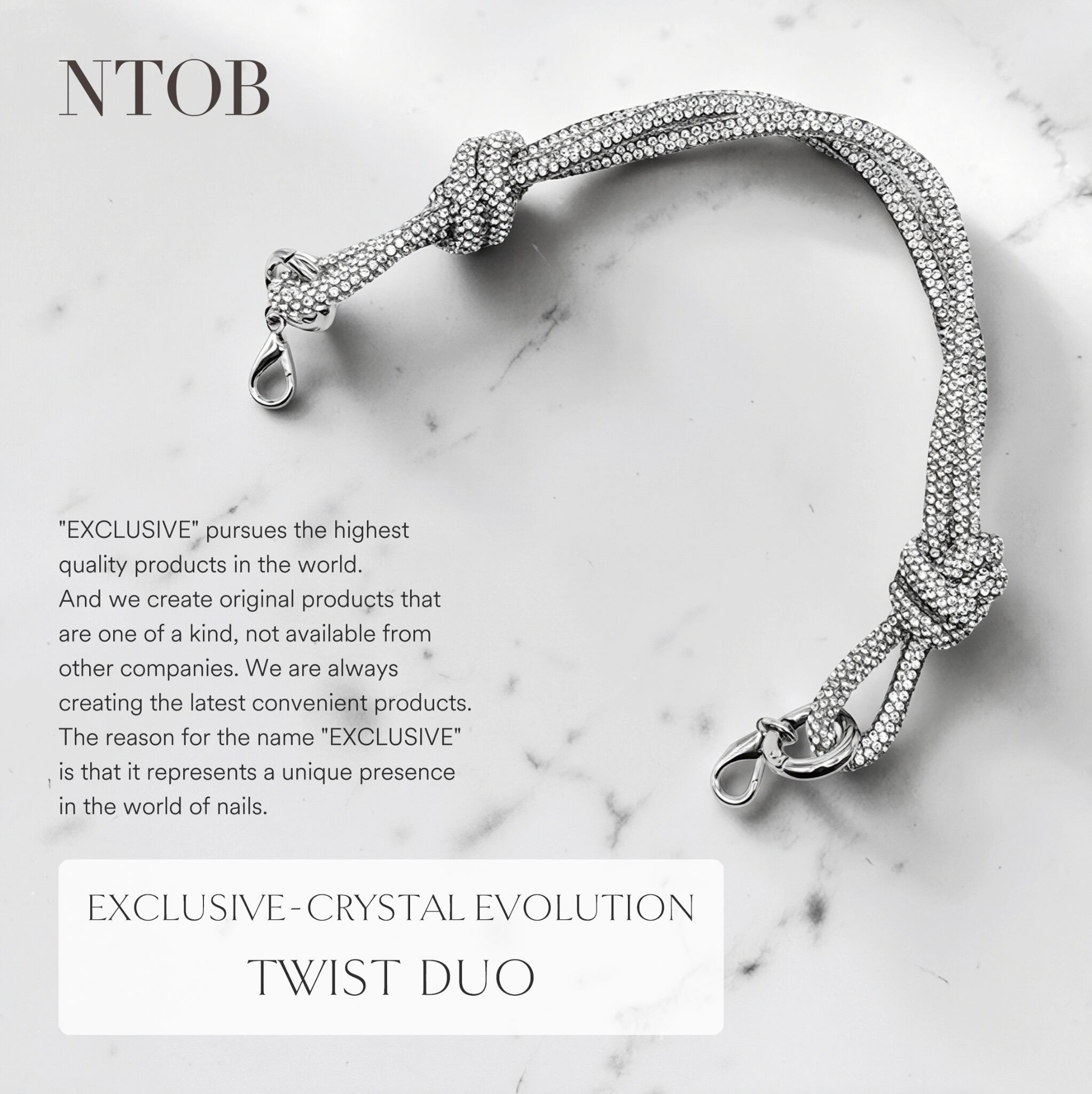 【シリーズ】クリスタル・エボリューション 【品名】ツイストデュオ 【カラー】クリスタル×シルバー 【サイズ】全長 約270mm(フック除く) 【素材】クリスタルガラス、合金 ※本商品は、粘着性をもつ特殊素材による接着技法を採用しております。そのため、膨張時には圧力を加えることで、パーツ同士の密度を調整することが可能です。